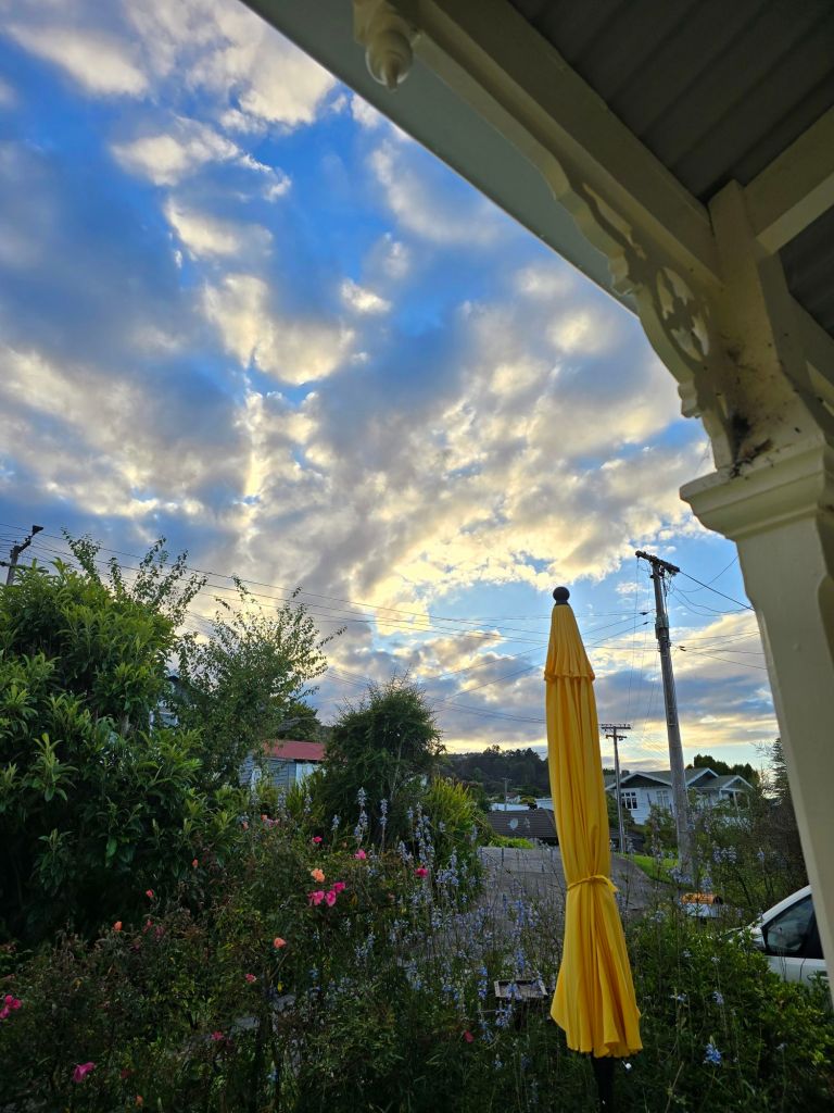 Shade cloth aloft, our back deck is still hot. It is our ‘summer seat’ for meals, visitors, that extra coffee.