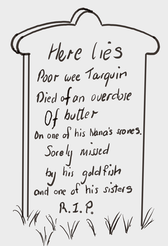 At home the was a Proper Spread of Butter. Not that we could not afford a wee excess. It was Good Manners. When pressed my Mum would say, “Well, uhm, too much will make you ill, and, uhm, that’s all there is to it. So.”